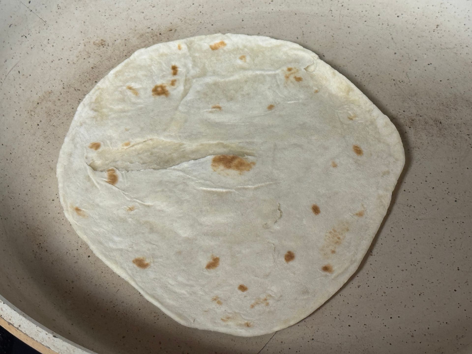 Warm a tortilla to soften for rolling, place the tortilla onto a clean surface.
