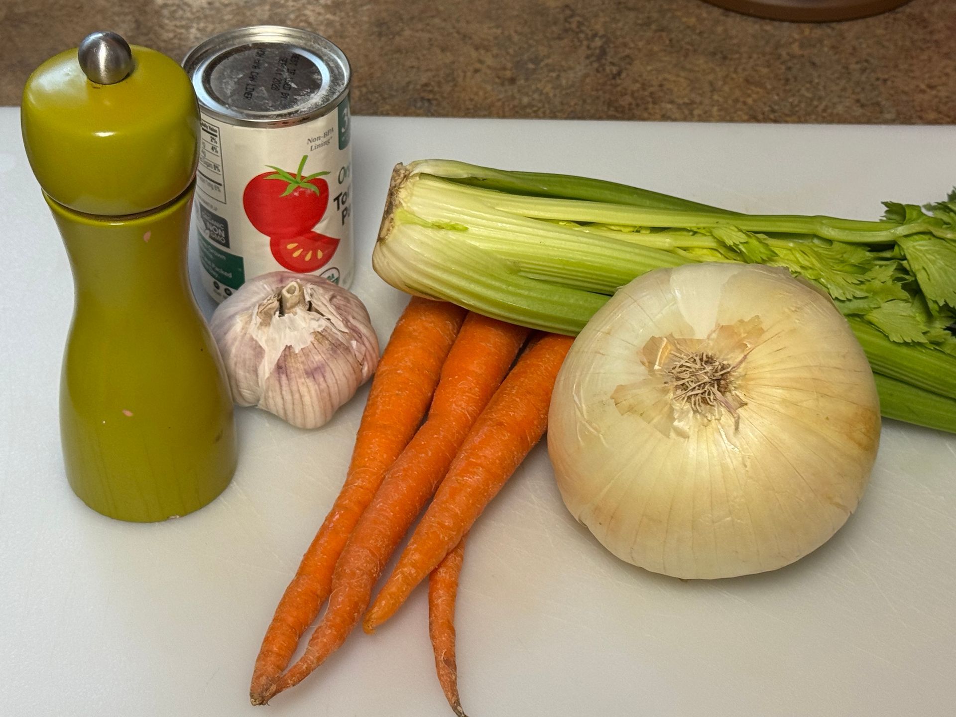 Traditional mirepoix (50% onion/ 25% carrot/ 25% celery)
