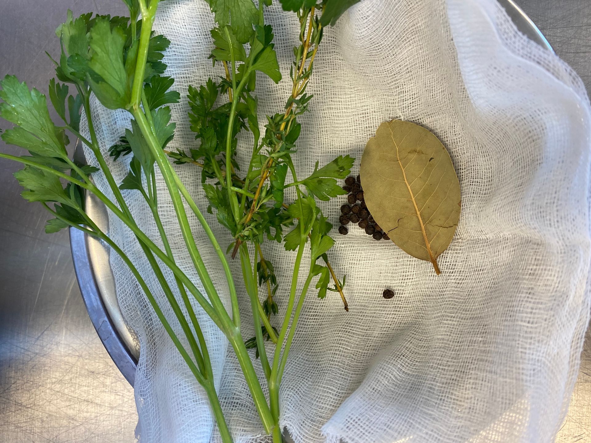 1 ea Sachet d' epices (1 bay leaf, 5 peppercorns, 1 thyme spring)