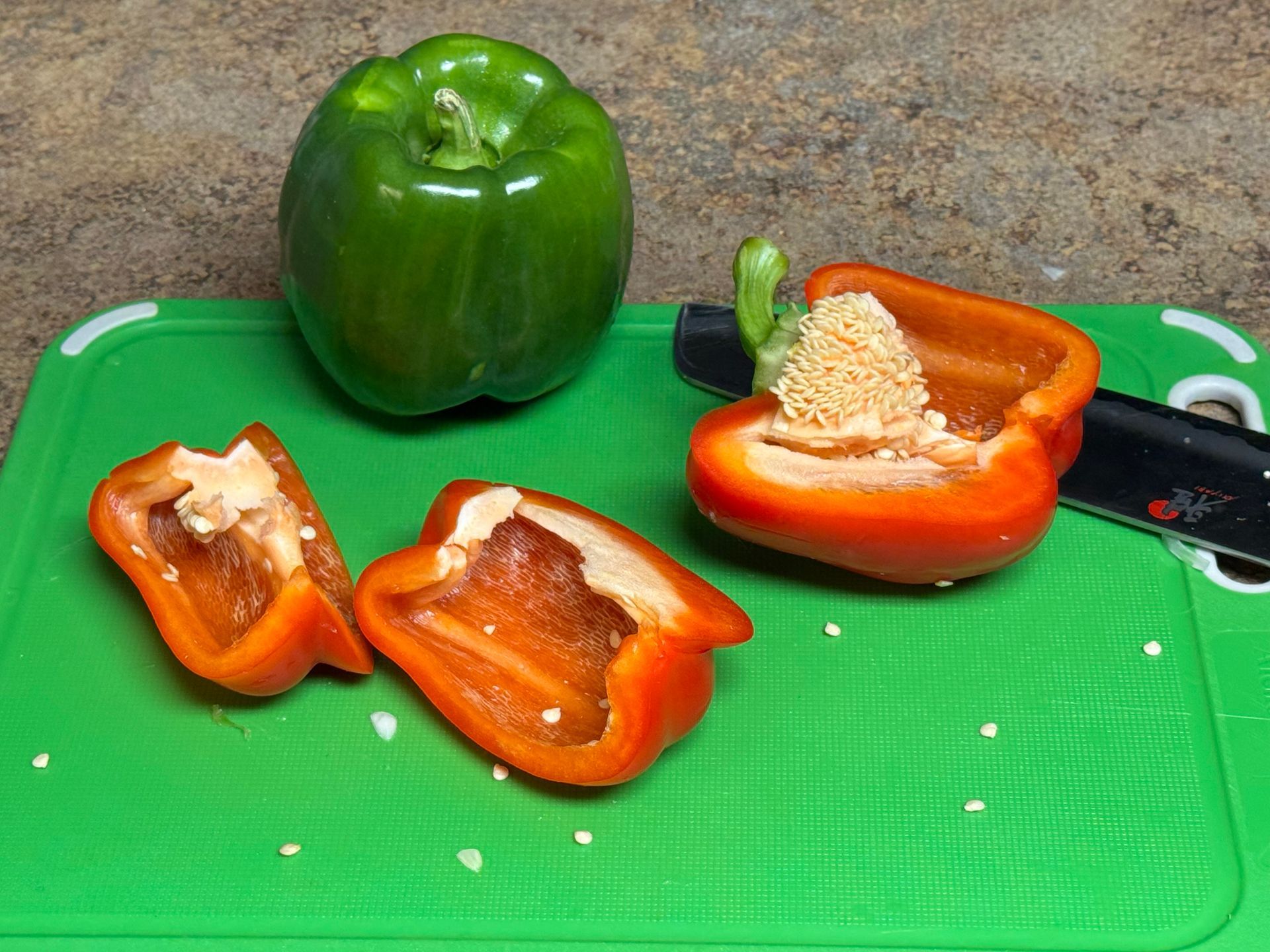 Bell peppers are the sweet, non-pungent members of the Capsicum annuum family, prized for their crisp texture, juiciness, and vibrant colors. Green, red, yellow, and orange peppers are the same fruit at different stages of ripeness, with sweetness increasing as they mature. In the kitchen, bell peppers are valued for their versatility—equally at home raw in salads, roasted for depth and sweetness, or sautéed as a foundational aromatic in countless cuisines.