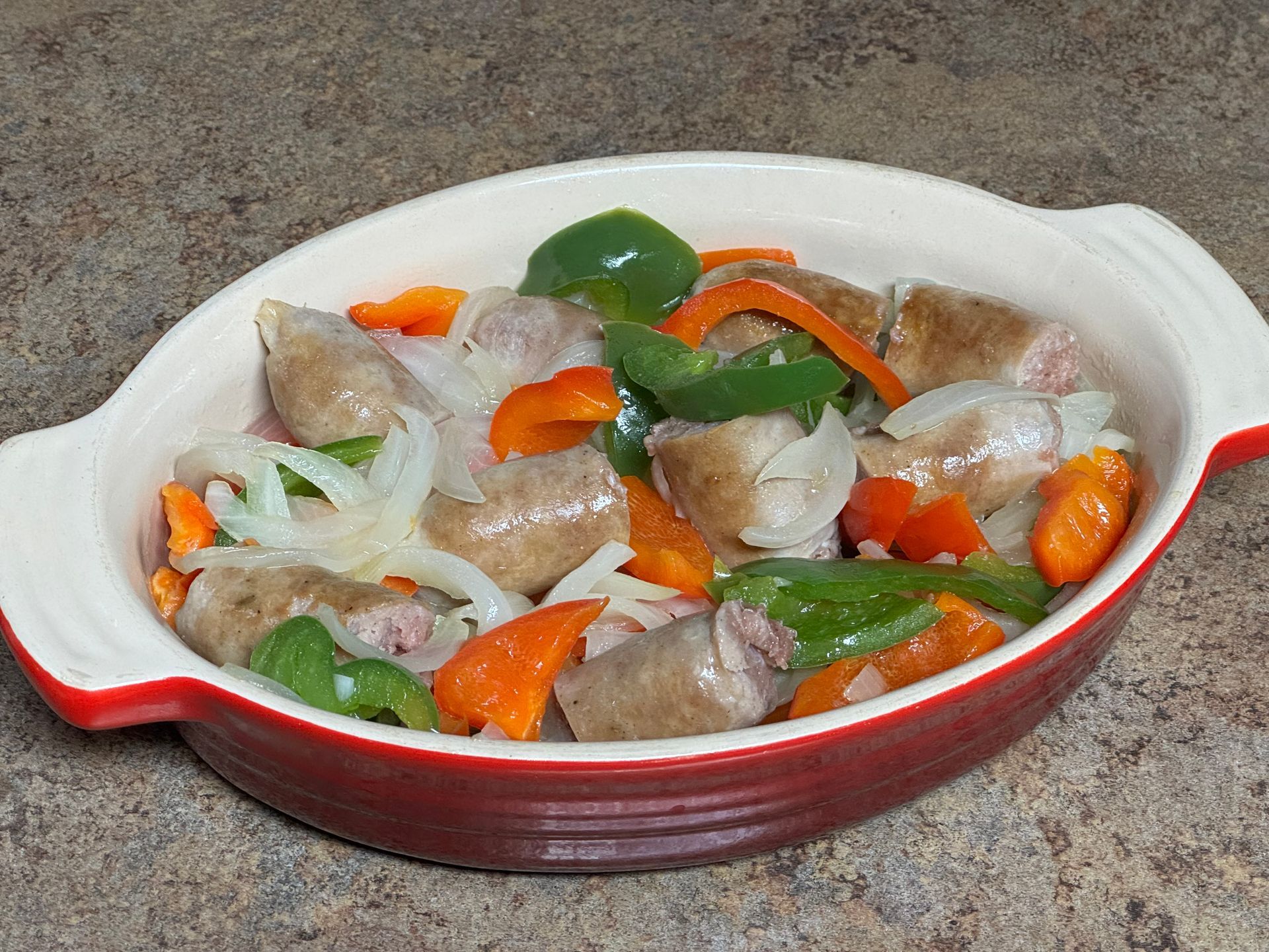 Years ago I was competing in Erfuft, Germany with a CIA Culinary Olympic team. When the competition was over, we had time to walk around Erfurt (home of the famous poet Goethe). There was a man grilling German sausages on a small grill in the center of the town square. I joined the long line of locals purchasing delicious, grilled German sausage with onions-amazing!