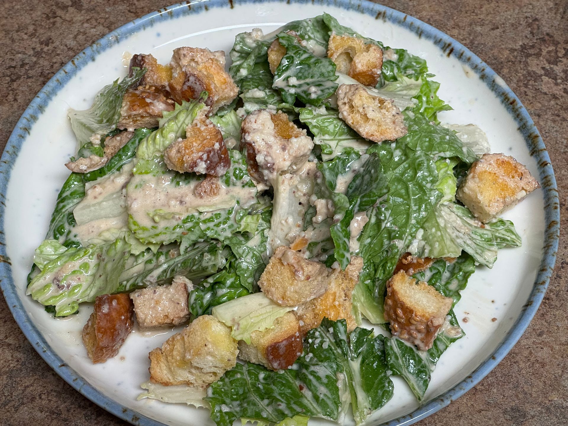 When I was a student studying culinary arts at the CIA, preparing Caesar salad and fambéed desserts were competencies we were tested on when we were studying in the school restaurants. Caesar salad is delicious for a variety of reasons... croutons fried or toasted with olive oil provides great texture and is delicious, Caesar salad dressing is an 'umami bomb' of flavor... savory and deeply satisfying notes from anchovies, Worcester sauce, aged parmesan cheese and rich, creamy mouthfeel from the fat from egg yolks.. absolutely delicious.