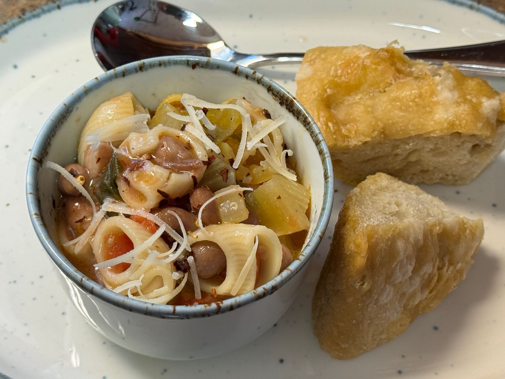 This is cornbread stuffing with carrots, celery, leeks & rosemary.
