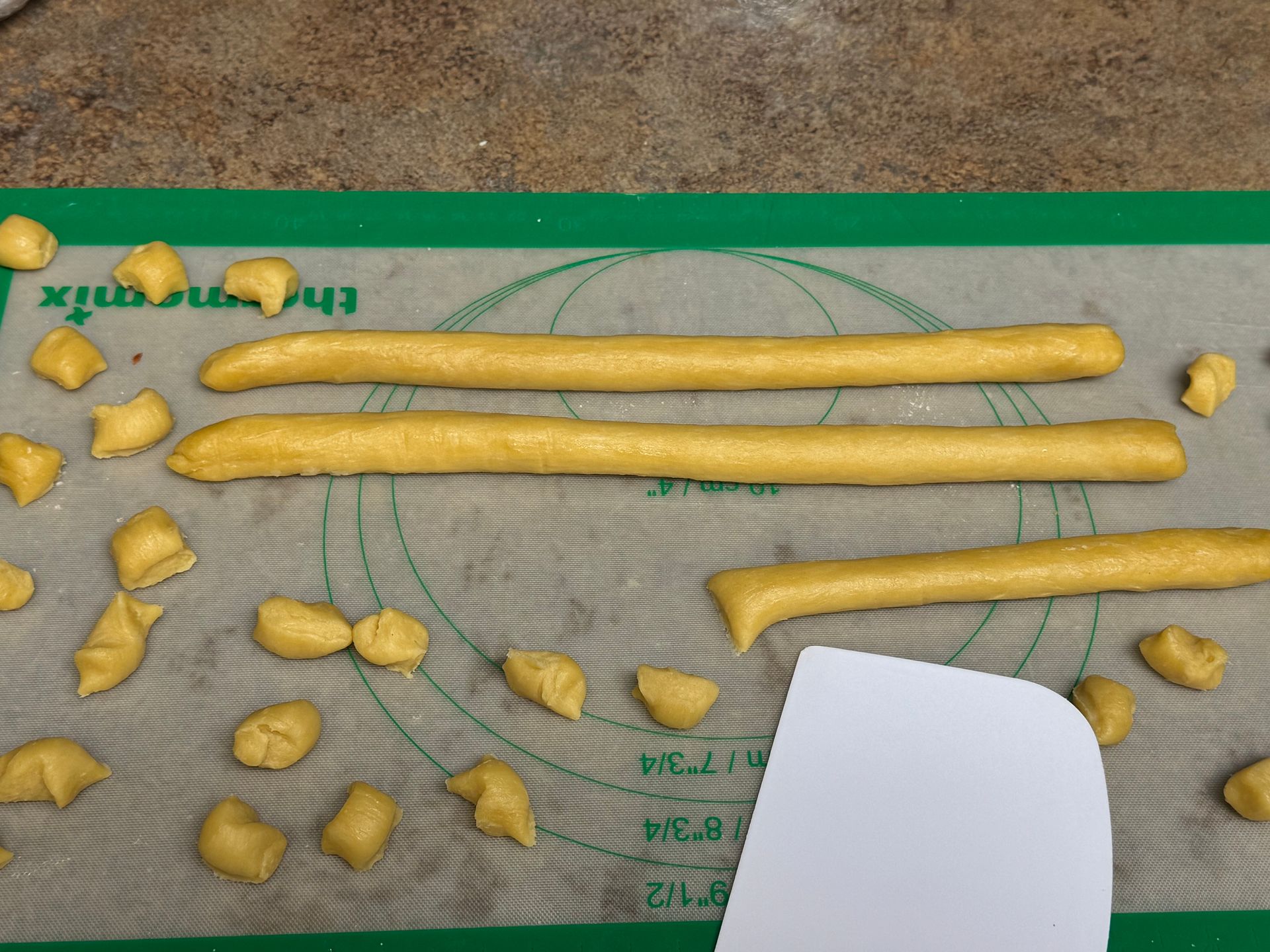 If your hands are sticking, dust a little flour onto the cutting board.