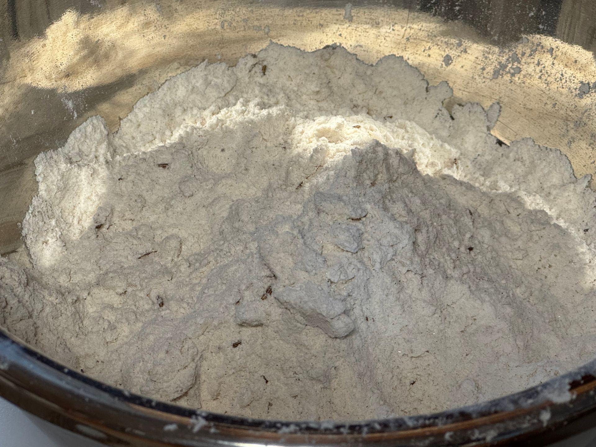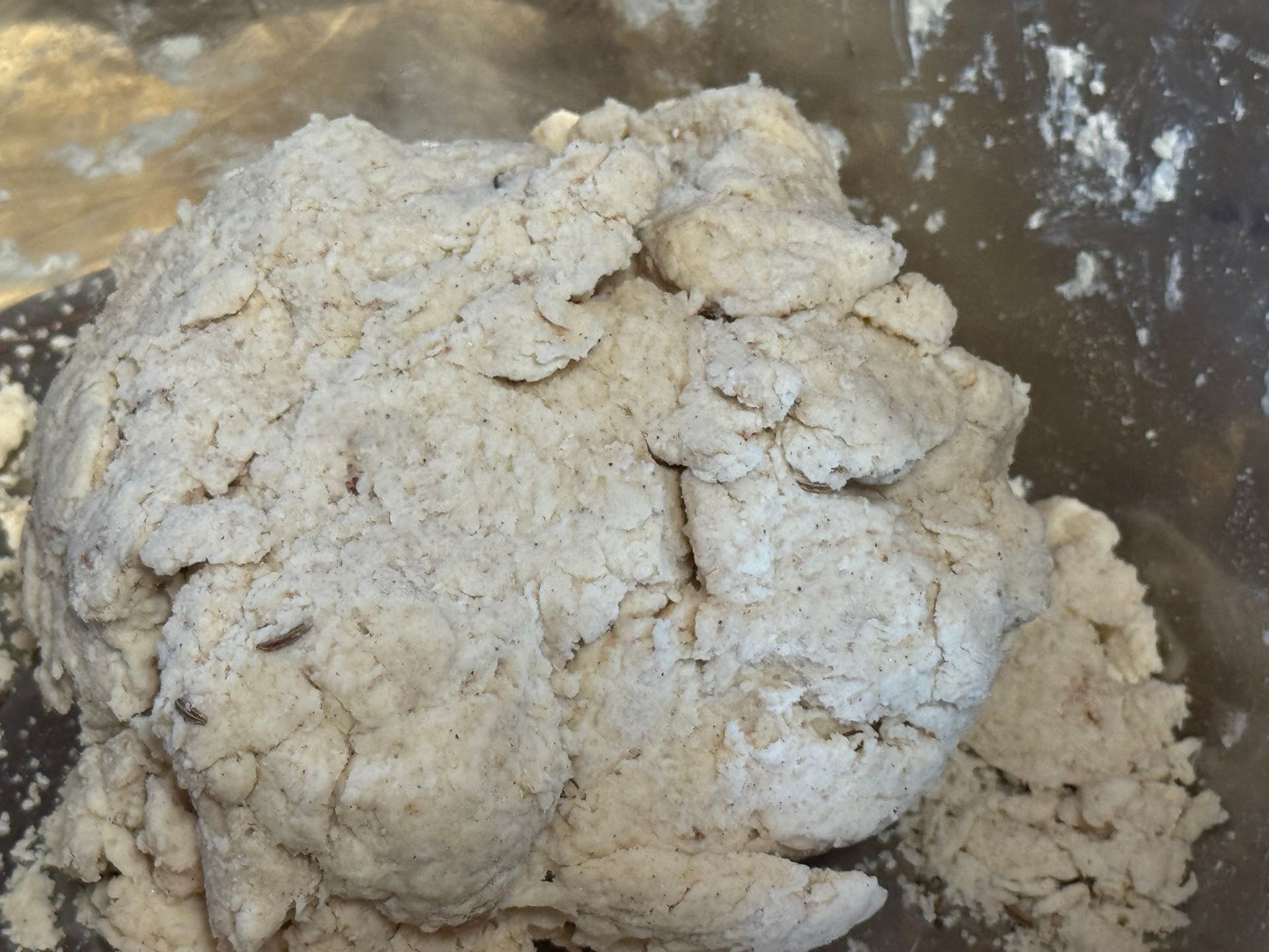 Fold in the raisins and caraway seeds at this point-gently.