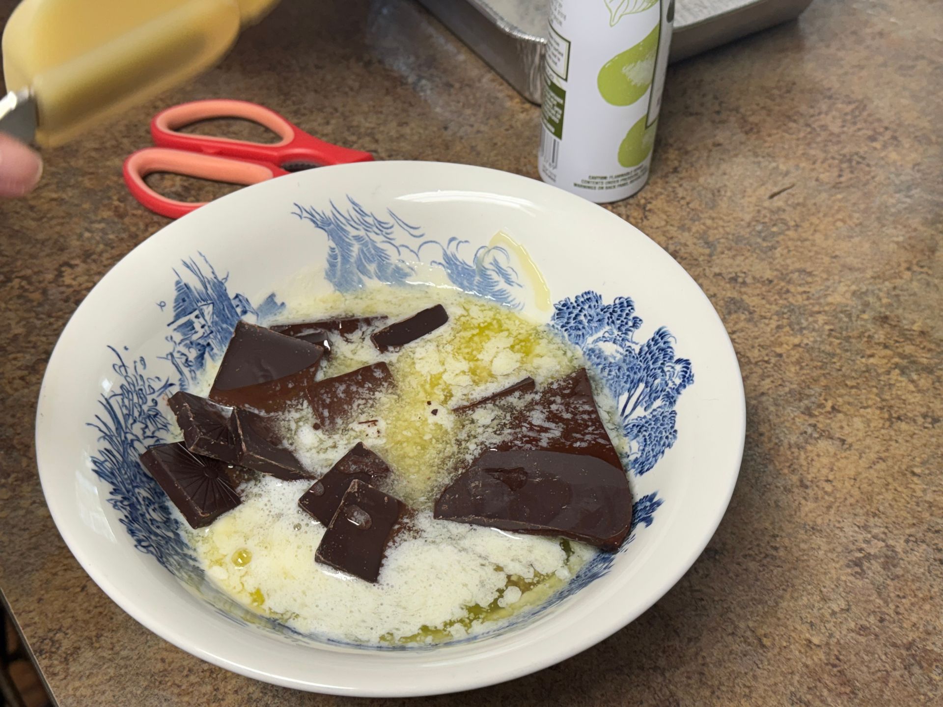note: I see people melting chocolate in a pot, directly over the heat-this is very challenging and usually the chocolate scorches!