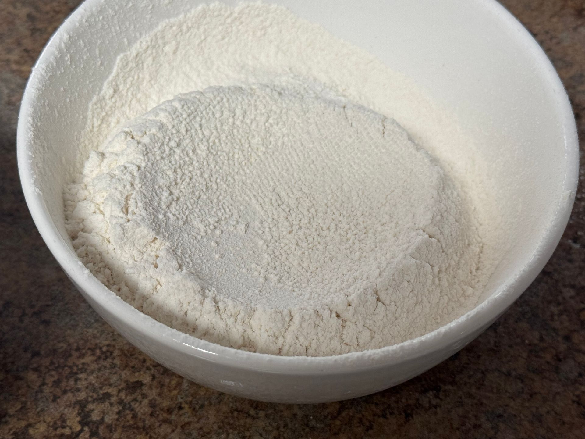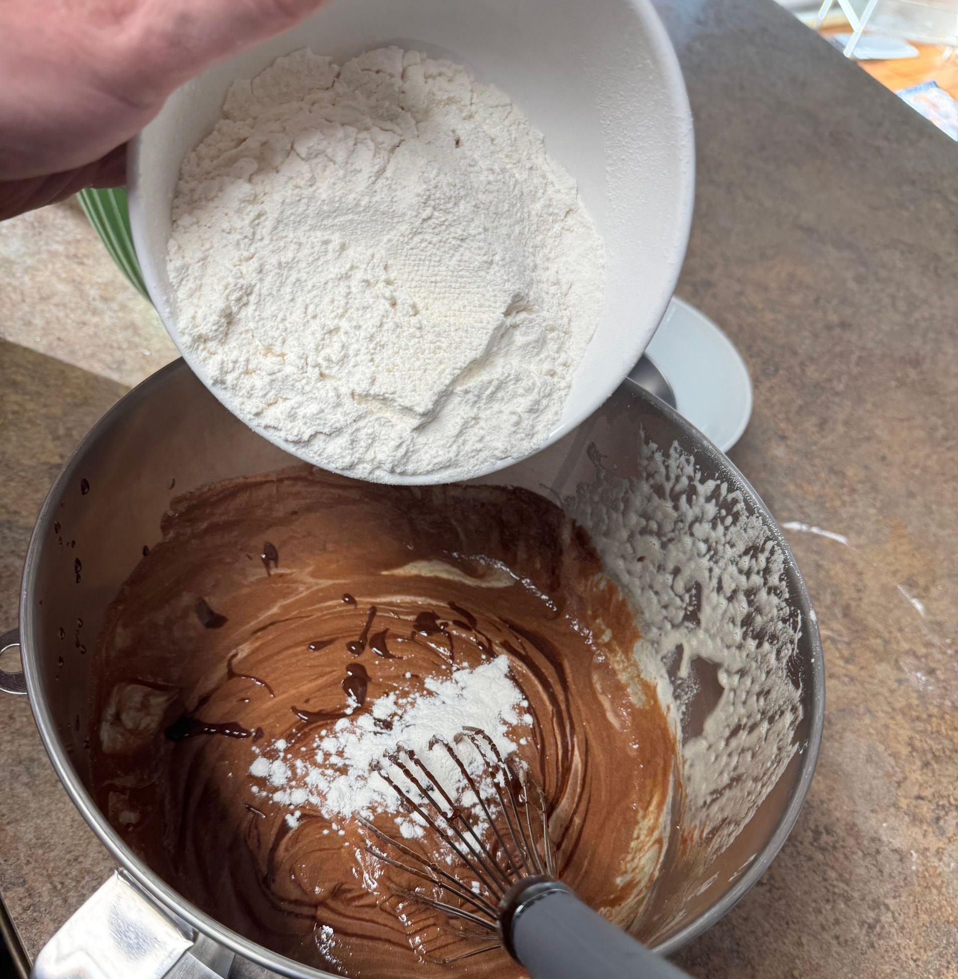 When the eggs are almost completely incorporated, gently fold in the dry ingredients.