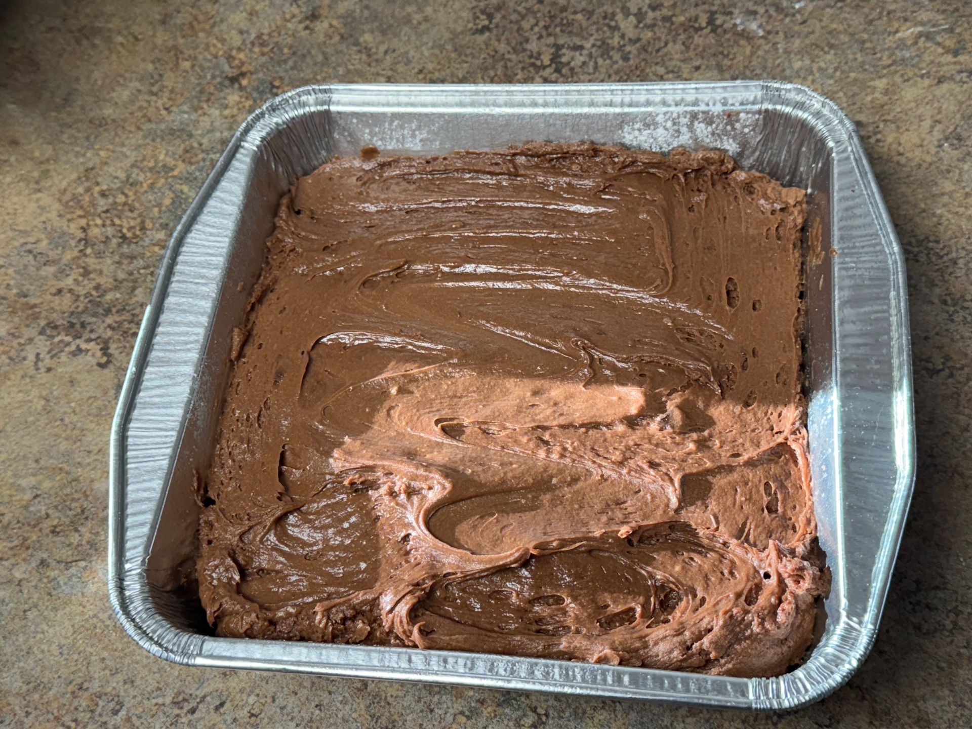 Pour and scrape the batter into an unbuttered 9-inch square pan-a heavy ceramic or glass pan is ideal.