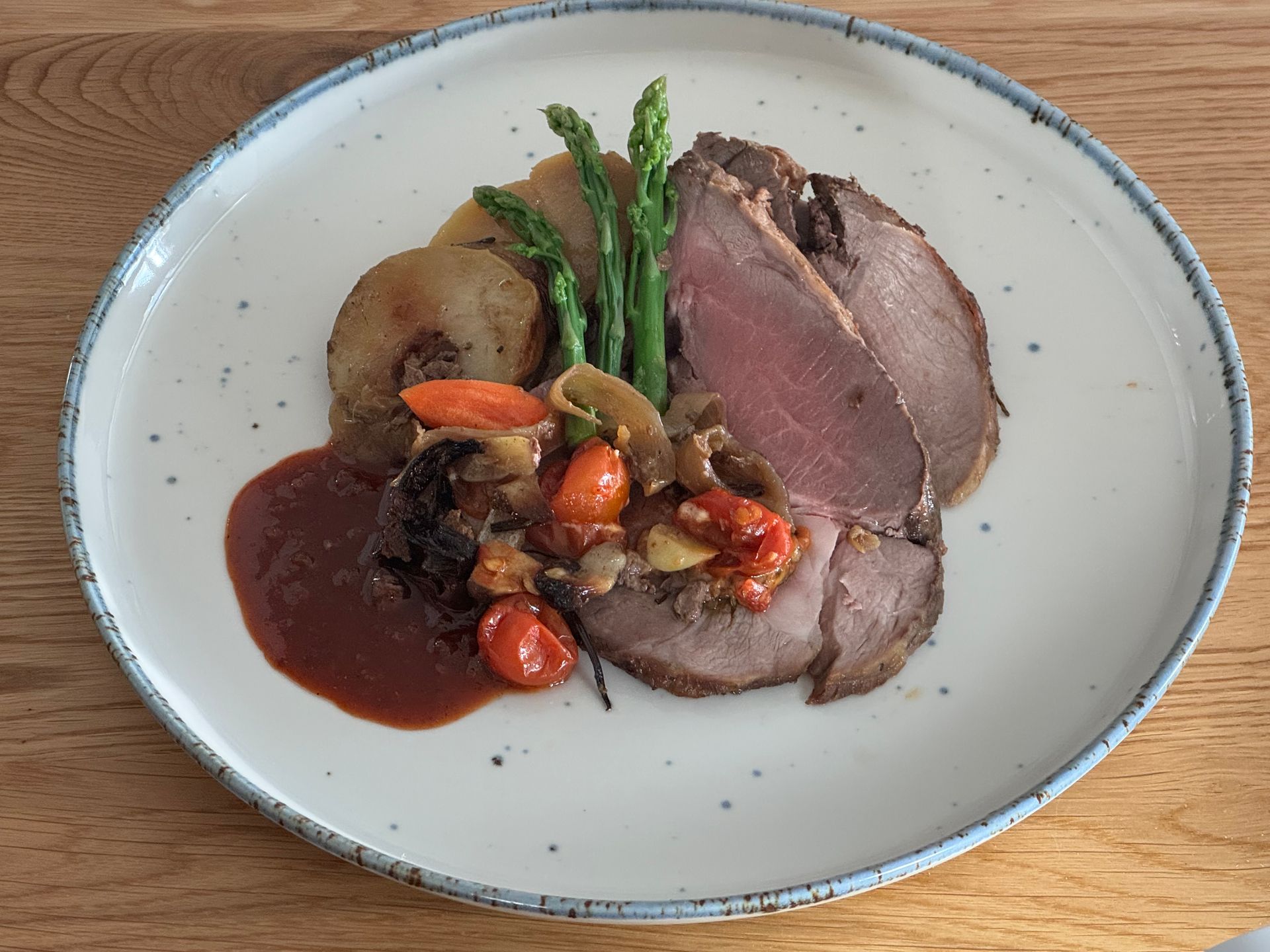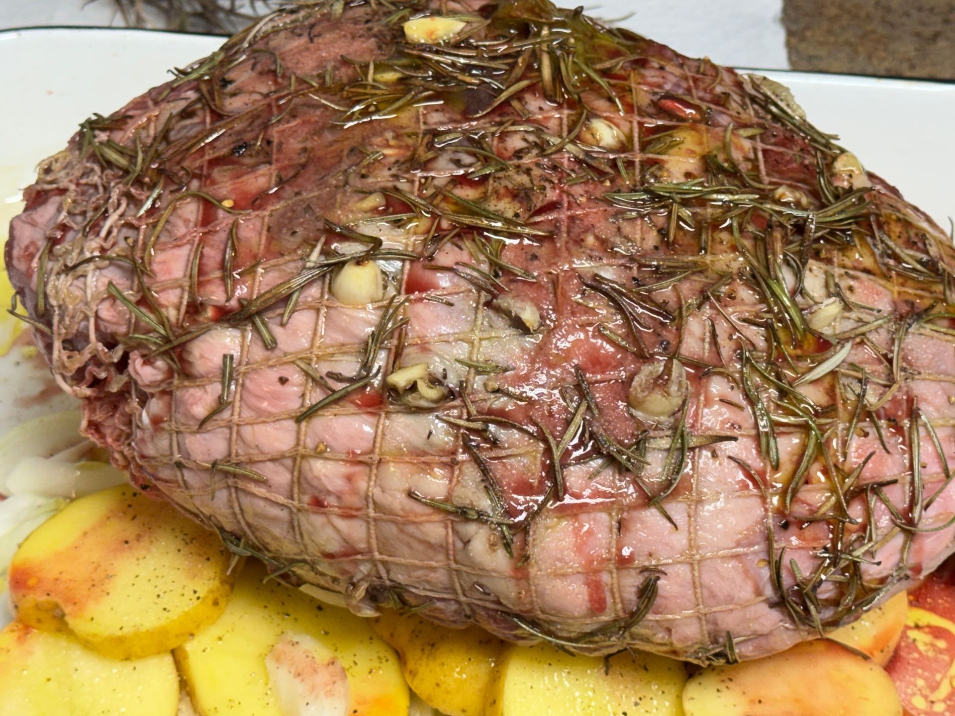 The lamb roast often had herbs such as fresh thyme or rosemary added for amazing flavor. All of the flavor from the meat juices and fat and herbs baste into the potatoes during baking creating an amazing meal.