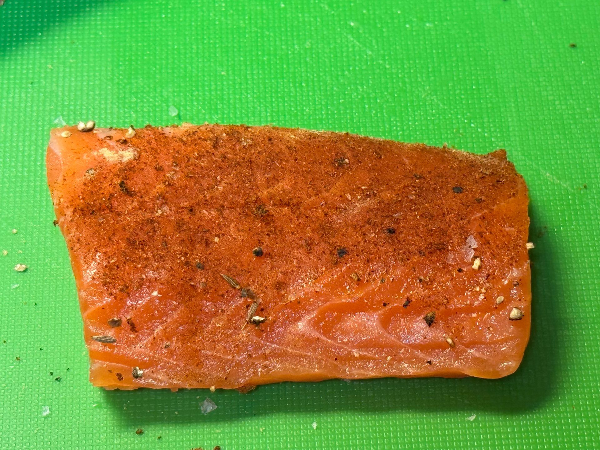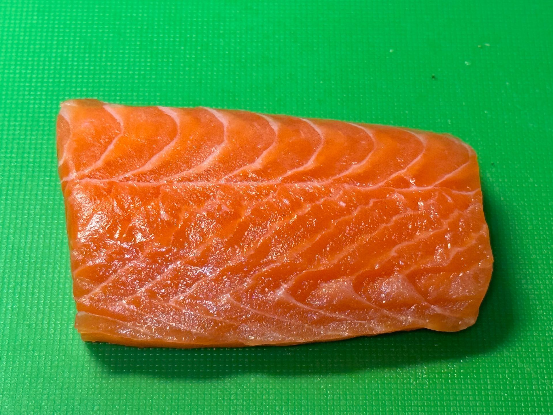 I prefer farm raised, Atlantic salmon for forcemeats due to the milder flavor and fatty texture.