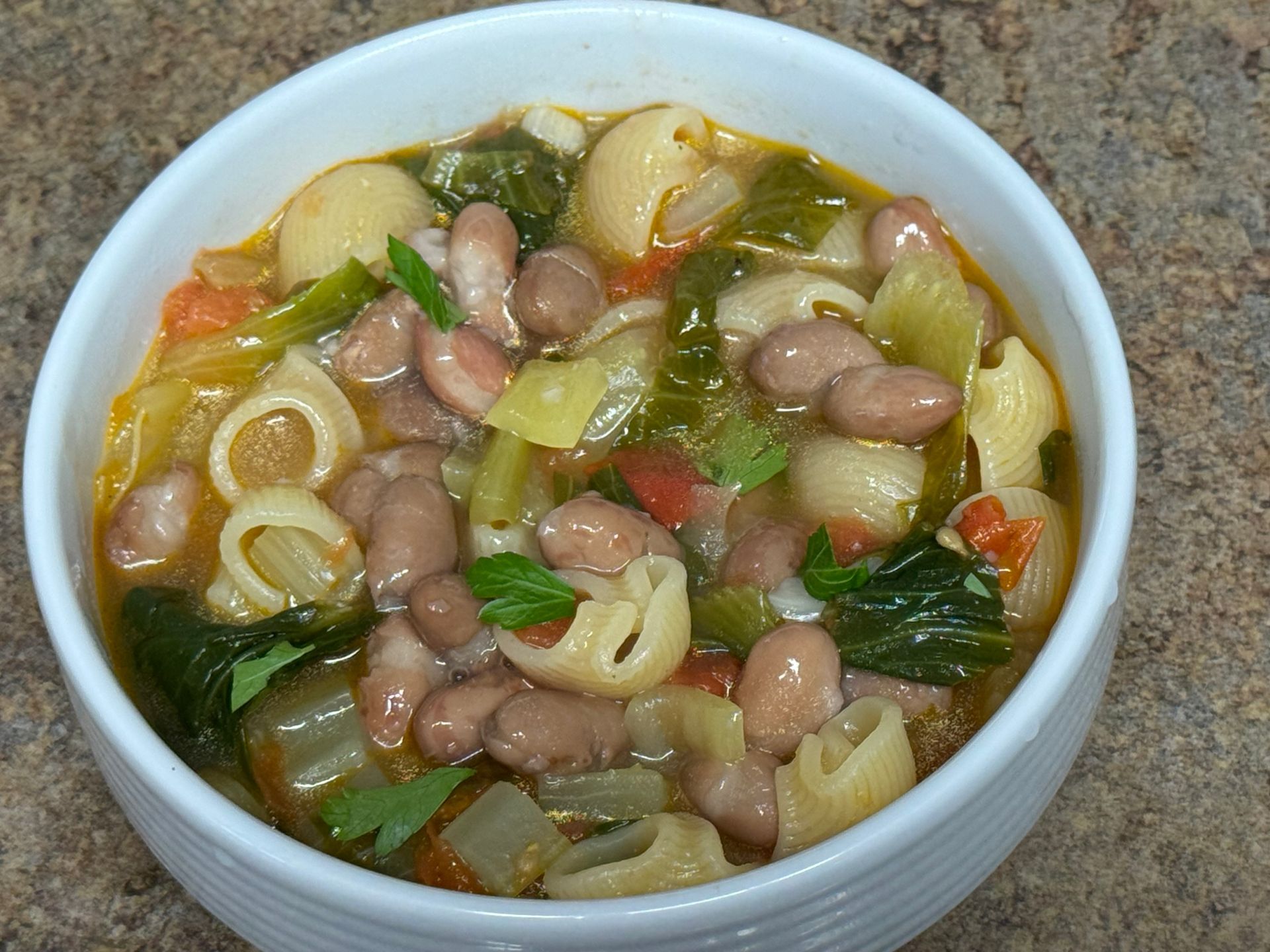 The highway was quiet, the snow falling heavy under a bright full moon. By the time I reached home, cold and very hungry, my parents were sitting at the dining room table with a steaming pot of pasta e fagioli, crusty Italian bread and a bottle of Italian red wine. Simple, humble, and absolutely perfect — the kind of meal that reminds you why food matters.